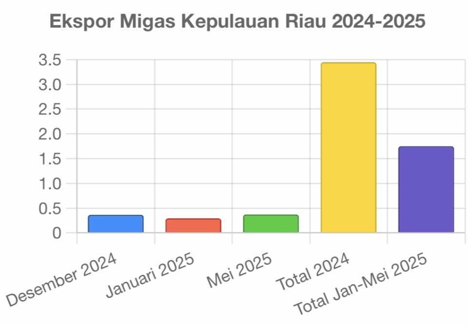 Setelah sempat menurun, produksi migas di Kepri mulai bangkit sejak Mei 2025. Lapangan Forel dan Terubuk resmi beroperasi dengan tambahan kapasitas sekitar 30.000 barrel oil equivalent per day (BOEPD). Data ini sejalan dengan laporan Badan Pusat Statistik Kepri. Memasuki 2025, ekspor migas mengalami penurunan pada Januari sebesar US$295 juta, turun 19,36% dari Desember 2024. Meski demikian, data kumulatif Januari-Mei 2025 menunjukkan rebound dengan total ekspor migas mencapai USD1,75 miliar, didorong oleh kenaikan signifikan pada Mei sebesar US$372,9 juta (naik 38,77% dari Mei 2024).