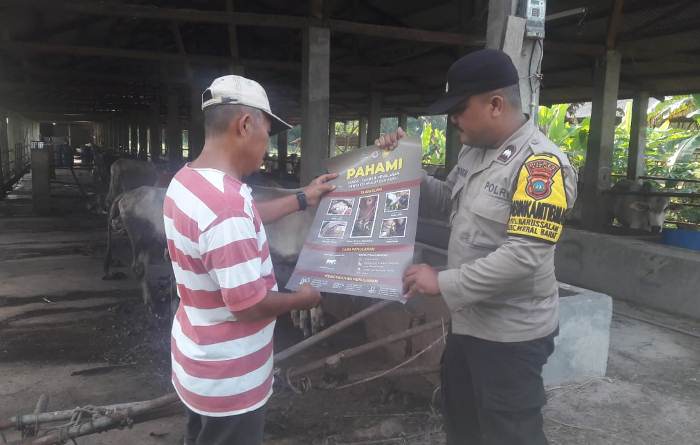 Kapolsek Meral, AKP Kumala Enggar Anjarani menambahkan, imbauan Bhabinkamtibmas tersebut sebagai langkah antisipasi mencegah penularan PMK kepada hewan ternak.