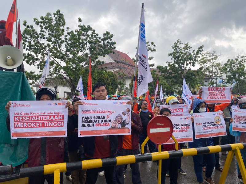“Artinya kenaikkan 5 persen (lebih tinggi) dari upah buruh, yang jelas kami menolak,” ujar Yafet usai unjuk rasa.
