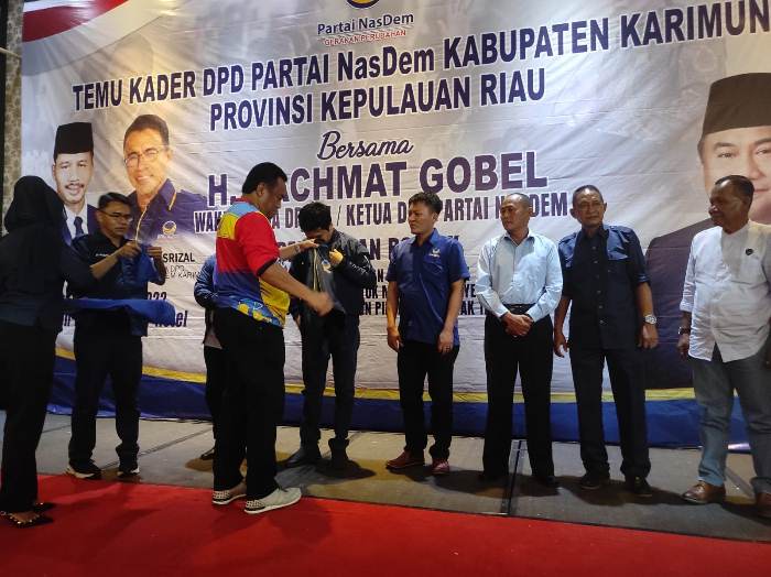 Momentum kedatangannya ke Karimun dimanfaatkan Racmat Gobel untuk bertemu dengan kader partai besutan Surya Paloh tersebut.