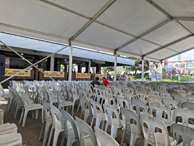 Di depan tenda, terdapat dua panggung yang akan digunakan pasangan Rudi-Rafiq untuk memaparkan visi dan misi mereka, sementara satu tenda lainnya akan menjadi tempat para relawan dan milenial Kepri yang menyuguhkan berbagai atraksi dan hiburan.