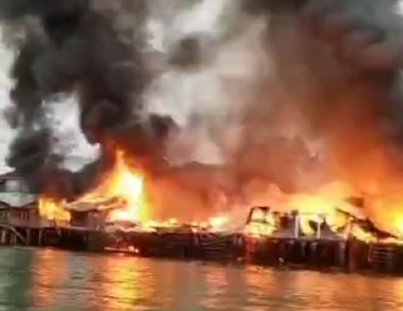 Belum diketahui penyebab pasti kebakaran, yang pasti api telah menghanguskan sejumlah rumah di pulau itu.