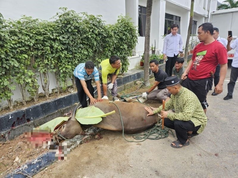 Penyembelihan hewan kurban di Kejari Batam, Rabu (19/6/2024) pagi. Foto: Gokepri.com/Engesti