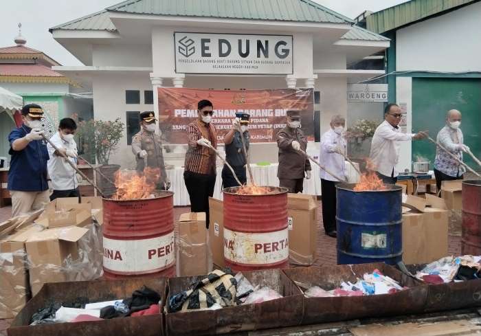 Pemusnahan barang bukti tersebut berlangsung dihalaman Kantor Kejari Karimun.