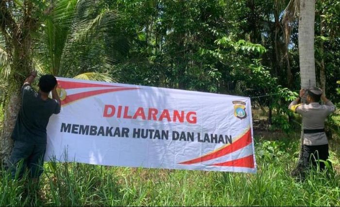 Karimun (gokepri.com) – Untuk mengantisipasi terjadinya kebakaran hutan dan lahan, jajaran Polres Karimun melalui Bhabinkamtibmas gencar lakukan sosialisasi dan pemasangan brosur, pemasangan spanduk tentang larangan membakar lahan, perkebunan dan hutan, Rabu 2 Agustus 2023.