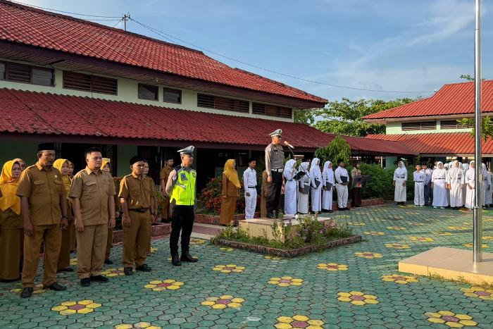 Kegiatan yang dimulai pukul 07.00 WIB tersebut diisi dengan peran sebagai pembina upacara sekaligus penyampaian pesan-pesan keselamatan berlalu lintas kepada para siswa-siswi.