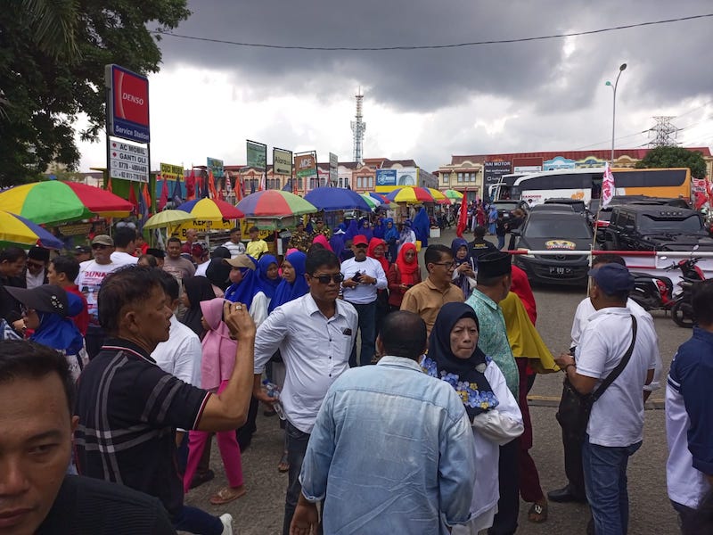 Semangat dari simpatisan, kader, dan warga se-Provinsi Kepri terus dinyalakan oleh pembawa acara melalui pengeras suara.