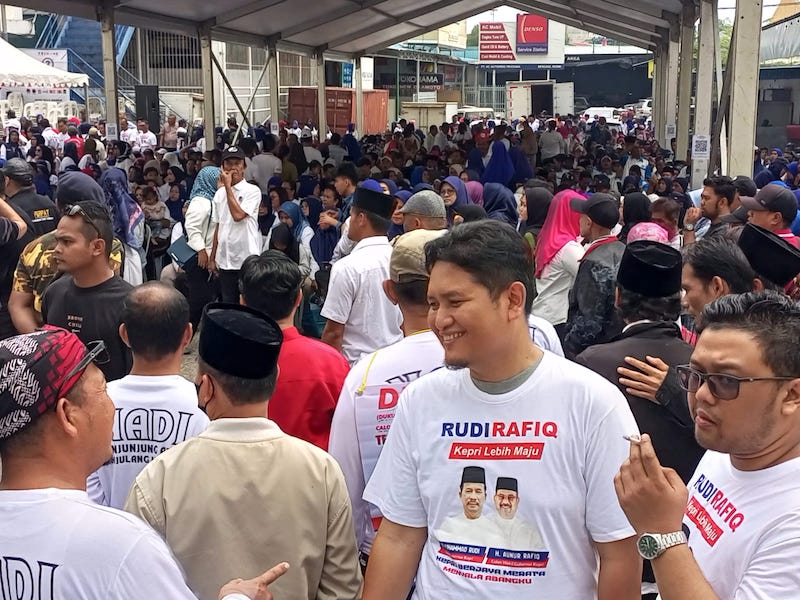 Suasana kemeriahan kampanye perdana pasangan Gubernur dan Wakil Gubernur Provinsi Kepulauan Riau (Kepri) nomor urut 2, Muhammad Rudi dan Aunur Rafiq (Rudi-Rafiq), yang digelar di Posko Kemenangan, semakin membara, Sabtu siang, 28 September 2024.