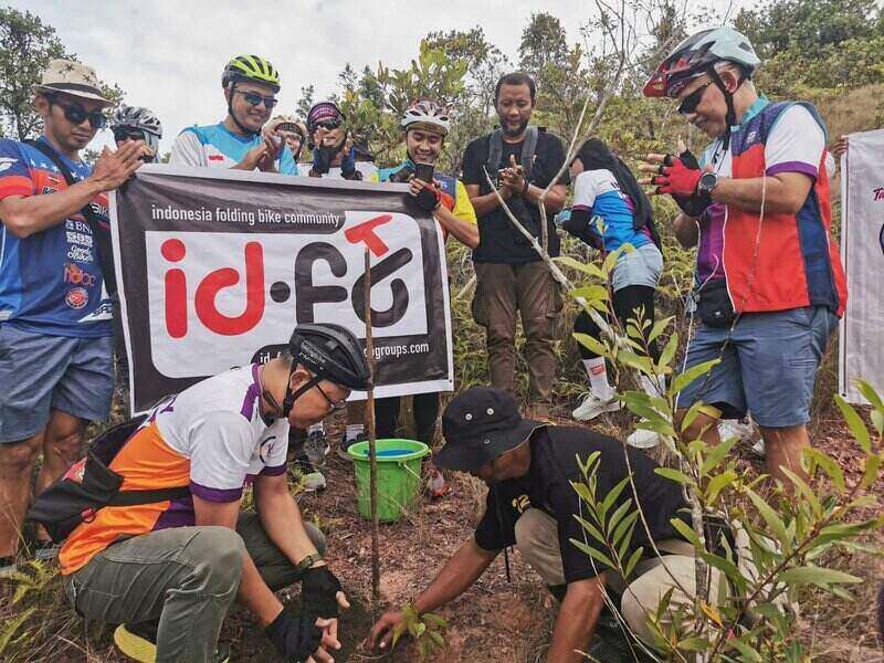 BATAM (gokepri.com) – Ratusan pesepeda lipat di Batam menunjukkan kepedulian terhadap kelestarian lingkungan. Selain gowes bareng, mereka juga menanam bibit pohon balau di reservoir Sei Harapan, pelepasan ikan koi, kura-kura dan merpati.