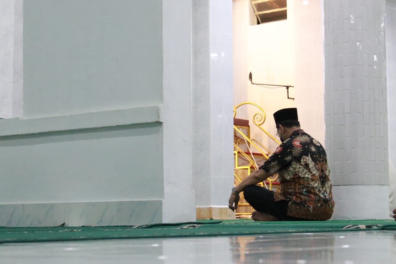 Calon Gubernur Kepri nomor urut 1 ini melaksanakan shalat subuh berjamaah di Masjid sebelum melanjutkan agenda kampanye keliling di Kabupaten Lingga, Jumat (6/11/2020).