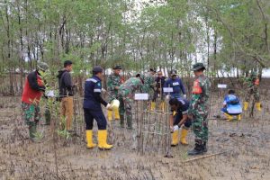 PT Timah Kolaborasi Koramil 3 Kundur Tanam Mangrove di Pantai Timun