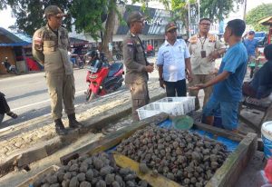 Karimun (gokepri.com) – Petugas Satpol PP Karimun merelokasi pedagang kerang yang berjualan di dekat pintu .