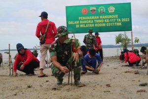 Satgas TMMD Karimun dan Masyarakat Tanam 500 Mangrove di Pantai Pasar Lama Buru