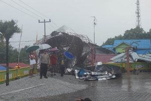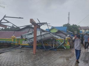 Karimun (gokepri.com) – Cuaca ekstrem Angin puting beliung merobohkan kubah Masjid Al Falah, Kelurahan Teluk .
